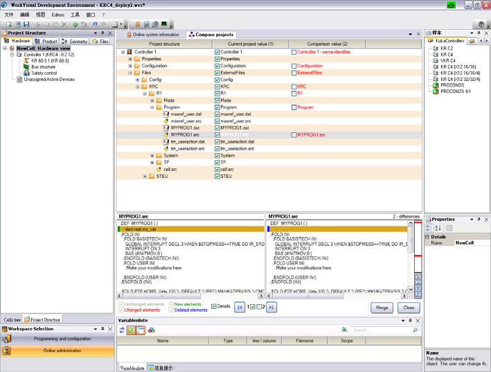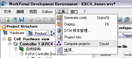 2. 選擇需與當前 WorkVisual 項目作比較的項目,例如實際機器人控制系統上的同名項目。