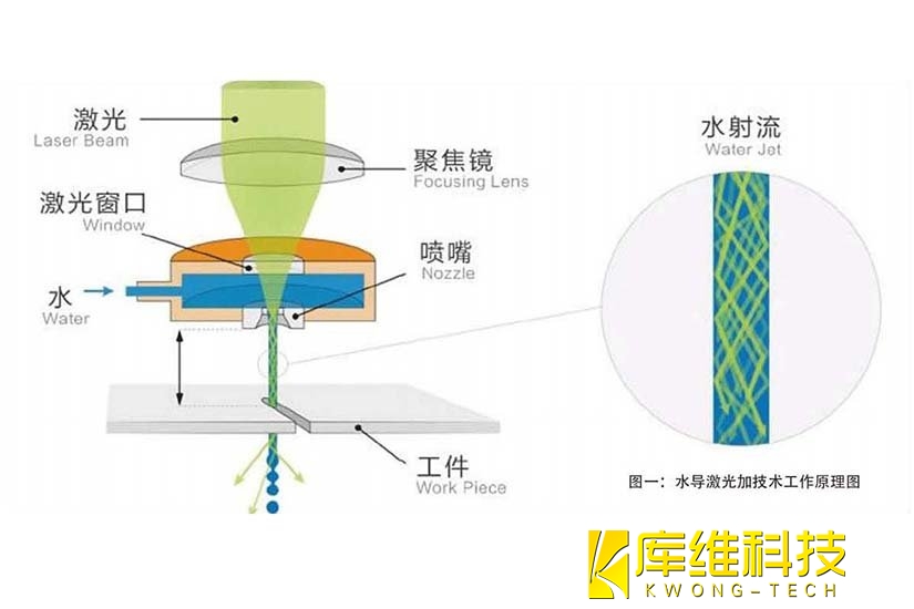 水導激光加工技術(WJGL)是一種混合加工方法,它將激光與“細如發絲”的水射流相結合,以類似于傳統光纖的方式通過全內反射精確引導激光束,水射流可以持續冷卻切割區域并有效地清除碎屑。作為一種“清潔、受控的冷激光技術”,WJGL技術解決了干式激光加工技術存在的重大問題,如熱損傷、污染、變形、碎屑沉積、氧化、微裂紋、錐度和精度低。實現對玻璃、陶瓷、藍寶石等脆性材料的精密切割,還能夠去除材料表面的油墨、PVD 等,為脆性材料的精細加工及表面處理帶來了極大便利,進一步拓寬了激光切割技術在不同材料加工領域的應用范圍。