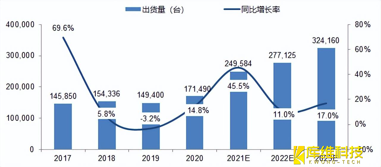 根據(jù)相關(guān)數(shù)據(jù)表明,2020年中國(guó)工業(yè)機(jī)器人市場(chǎng)出貨量為17.15萬(wàn)臺(tái),同比增長(zhǎng)14.8%,預(yù)計(jì)2021年中國(guó)工業(yè)機(jī)器人市場(chǎng)出貨量將為24.96萬(wàn)臺(tái),同比增長(zhǎng)45.5%。長(zhǎng)遠(yuǎn)來(lái)看,中國(guó)工業(yè)機(jī)器人市場(chǎng)發(fā)展空間廣闊,行業(yè)需求也將穩(wěn)速增長(zhǎng),國(guó)產(chǎn)替代趨勢(shì)不改。